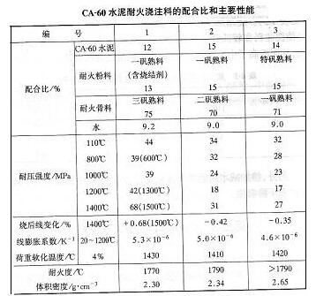 CA-60水泥耐火澆注料的最高使用溫度為1500℃,可滿足一般工業(yè)窯爐的使用要求。其配合比和主要性能,列與下表。從表中看出,烘干耐壓強(qiáng)度一般為30~35MPa,略高于1d耐壓強(qiáng)度:燒后耐壓強(qiáng)度隨著加熱溫度的提高而降低,與CA-50水泥耐火澆注料一樣,也存在中溫強(qiáng)度低的問(wèn)題。1200℃之后,因液相量不斷增多,已發(fā)生燒結(jié),澆注料形成陶瓷結(jié)合,因此強(qiáng)度隨著加熱溫度的提高而增加:燒后線變化和線膨脹系數(shù)與CA-50水泥耐火澆注料基本相似,荷重軟化溫度和耐火度略高些。因此,CA-60水泥耐火澆注料是比較好的筑路材料 .