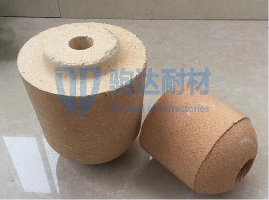 塞頭磚位于塞棒最下端和水口磚呈嚴(yán)密配合的耐火材料質(zhì)磚。不澆注時(shí)它堵住水口保證不漏鋼。澆注時(shí)提高塞棒,使塞頭磚和水口磚產(chǎn)生間隙,鋼水從水口流出。控制塞棒的高低,可調(diào)節(jié)鋼水的流出量。塞頭磚可以是黏土質(zhì)、不燒高鋁質(zhì)及焦油浸漬的不燒高鋁質(zhì)磚