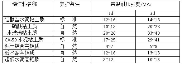 強(qiáng)度的結(jié)果,計(jì)算至小數(shù)點(diǎn)后1位,下表 為耐火澆注料的常溫耐壓強(qiáng)度。