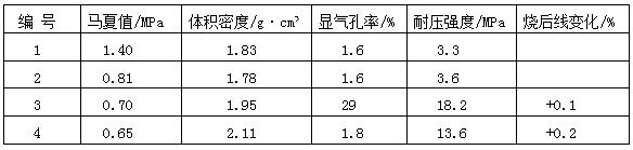 大、中型高爐用的炮泥配合比:棕剛玉或白剛玉20%~25%黏土和絹云母20%~25%,焦炭粉和SiC和30%~38%,焦油瀝青8%~10%,石墨2%~5%,另加13%~16%的結(jié)合劑和適量外加劑。在熱的輪碾機中混煉,時間為15~50min。炮泥性能,見下表。該炮泥也稱做無水炮泥。