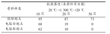 軋鋼加熱爐爐襯澆注料骨料的選擇主要是基于熱震穩(wěn)定性、高溫性能、導熱性能、成本等方面進行選材。從骨料的熱震穩(wěn)定性及高溫性能兩個方面分析,骨料應首選電熔莫來石、燒結(jié)莫來石、紅柱石等。因為以上幾種原材料在長期使用過程中主晶相是莫來石相,紅柱石骨料在1300℃以上轉(zhuǎn)變?yōu)槟獊硎嗪褪⑾,石英相可以和基質(zhì)中的氧化鋁反應生成二次莫來石。另外石英進入液體后,可提高液體的黏度,對提高澆注料的高溫性能起積極的作用。但電熔莫來石、燒結(jié)莫來石、紅柱石等骨料的成本相對于高鋁熟料要高,所以骨料中應盡可能少用電熔莫來石、燒結(jié)莫來石、紅柱石等材料。電熔白剛玉、電熔棕剛玉、燒結(jié)剛玉中骨料應優(yōu)選燒結(jié)剛玉(俗稱板剛玉),因其抗剝落性優(yōu)于電熔白剛玉和電熔棕剛玉,見表1。但燒結(jié)剛玉的成本太高,用于軋鋼加熱爐爐襯澆注料中用戶無法接受;另一方面因燒結(jié)剛玉的熱膨脹系數(shù)和導熱系數(shù)均高于莫來石,過多地使用燒結(jié)剛玉作為骨料會降低澆注料的熱震穩(wěn)定性,增加澆注料的導熱率,不利于節(jié)能、環(huán)保。