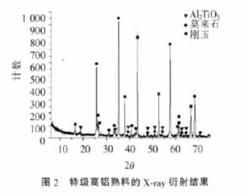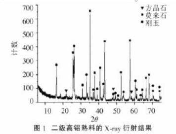 我國有豐富的鋁礬土資源,目前已探明的儲量超過20億t,居世界前列。因此礬土熟料的價格相對于剛玉、莫來石、紅柱石要低,而且常用的山西孝義特級、二級及三級高鋁熟料雜質(zhì)含量較低,見圖1~4。由于以上4種高鋁熟料礦物相主要為剛玉相及莫來石相,不含有低熔點的晶相,因此以上4種原材料都適合作為軋鋼加熱爐的原材料。