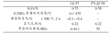 表3 LZ-55、PN-JZ-58錨固磚的主理理化指標