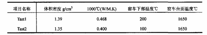 要求輕質(zhì)澆注料的工作溫度為1200℃,導(dǎo)熱系數(shù)小于0.400W/M·K(1000℃)時,窯車下部溫度下降到100℃以下。