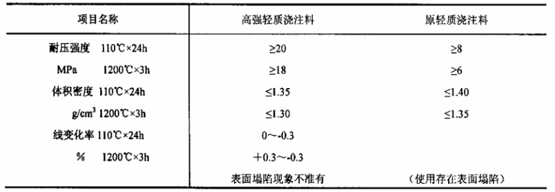 表1 高強(qiáng)輕質(zhì)澆注料的性能指標(biāo)