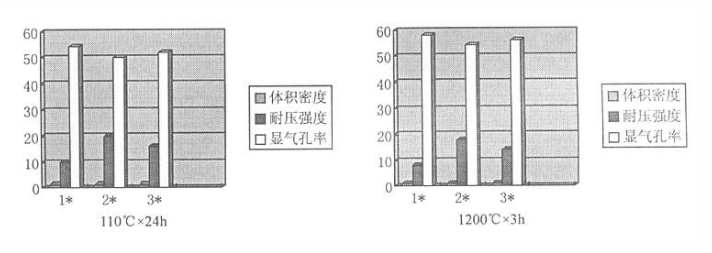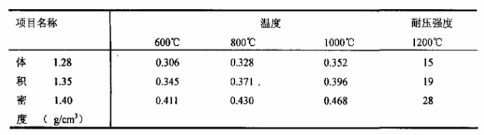 確定耐壓強(qiáng)度≥20MPa(110×24℃),體積密度≤1.35g/cm3,線變化率+0.3~-0.3%。這三項(xiàng)指標(biāo)的確定能夠解決使用中塌陷和裂紋的現(xiàn)象。
