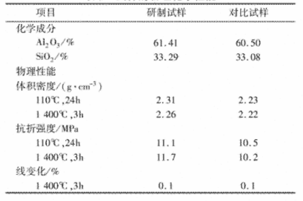 將新研制的制品試樣與現(xiàn)場使用的合資企業(yè)生產(chǎn)的端蓋澆注料對比,結(jié)果列于表2。