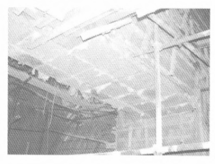 圖1為2號(hào)線2010年1月13日連接部位塌落后照片,框架大梁受到長(zhǎng)期熱輻射,導(dǎo)致混凝土發(fā)生脫落。在2009年3月檢修中工程部曾對(duì)此處進(jìn)行了2天的加固處理,經(jīng)過(guò)此段時(shí),澆注料溫度急劇上升,內(nèi)部水分無(wú)法排出,就會(huì)發(fā)生澆注料“爆頭”現(xiàn)象,導(dǎo)致表面澆注料發(fā)生剝落、凹凸不平,爆裂最深處達(dá)到10mm,嚴(yán)重縮短了澆注料的使用壽命。在2010年3月份檢修過(guò)程當(dāng)中又對(duì)此處進(jìn)行了修復(fù),影響了整個(gè)中修檢修的進(jìn)度。