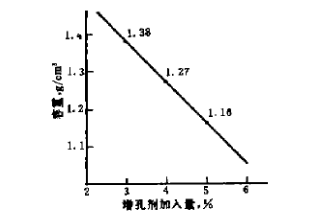 圖5 增孔劑加入量對(duì)輕質(zhì)部分容重的影響