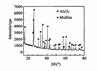 X射線衍射儀分析材料的物相組成結(jié)果表明:樣品中含有莫來石相60%、剛玉20%~30%、金紅石3%、玻璃相5%~10%。