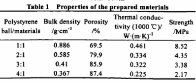 采用高鋁礬土和冶金硅灰作原料,聚苯乙烯球作造孔劑,利用凝膠注模工藝制備出高強(qiáng)輕質(zhì)莫來石-剛玉制品,主要研究料漿的最佳pH值和分散劑用量,測定了1550℃燒結(jié)樣品的強(qiáng)度、氣孔率、熱導(dǎo)率、物相組成和微觀結(jié)構(gòu),制備出的莫來石-剛玉材料體密0.37g/cm3,氣孔率87.37%,強(qiáng)度高達(dá)2.17MPa,熱導(dǎo)率僅為0.22W/(m.K)。