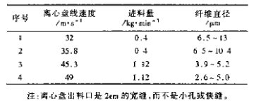 實驗結(jié)果說明,只要甩絲盤具有足夠大的合適線速度,即使寬縫式出膠口亦能使纖維直徑變細。同時,提高線速度還可以提高產(chǎn)量。