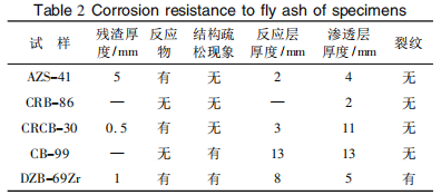 表2 各試樣的抗飛灰侵蝕試驗結(jié)果