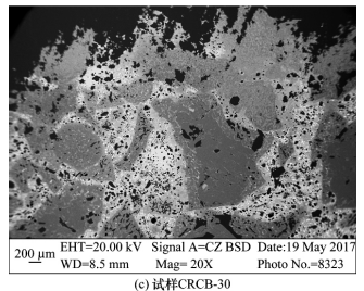 鉻剛玉磚CRCB-30的結(jié)構(gòu)與高鉻磚CRB-86相似,但因其含有高達60%(w)的Al2O3,而Al2O3極易被飛灰侵蝕,因此該磚的抗飛灰侵蝕性受到限制。可以看出,Cr2O3含量越高,材料的抗飛灰侵蝕性越好。
