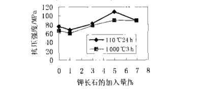 圖1 鉀長(zhǎng)石加入量對(duì)抗折強(qiáng)度的影響