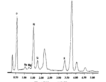 圖3是對(duì)試驗(yàn)中性能好的試樣進(jìn)行能譜分析、表明基質(zhì)中主要物相為莫來(lái)石,此外還有少量的鈣長(zhǎng)石。莫來(lái)石呈針狀,交錯(cuò)連接在一起。基質(zhì)組成中CaO、Al2O3和SiO2的含量滿足生成莫來(lái)石的條件,所以可以推斷在高溫時(shí)除了生成液相外,還有莫來(lái)石相存在。因?yàn)橐合嗟某霈F(xiàn)溫度低于莫來(lái)石的生成溫度,所以在基質(zhì)中莫來(lái)石的生成應(yīng)該從液相中析晶。從圖4的顯微照片中可以看出試樣中生成了大量針狀莫來(lái)石晶體。