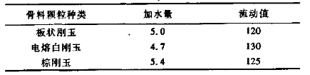 (2)當(dāng)采用不同檔次的顆粒骨料時(shí),要達(dá)到相同的流動(dòng)值,以采用電熔白剛玉時(shí)加水量最少,加水量4.7%即可達(dá)到施工要求。