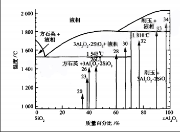 由圖3所示的鋁-硅圖可以看出,鋁含量越高,分級(jí)溫度越高,但基本上隨著密度增大,導(dǎo)熱性降低,氣孔率也降低。