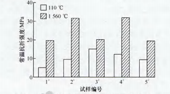 圖2 不同溫度處理后各試樣的常溫抗折強度