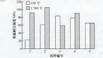圖3 不同溫度處理后各試樣的常溫耐壓強度