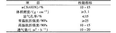 表4 試制的SiAlON結(jié)合剛玉質(zhì)透氣磚的主要性能指標