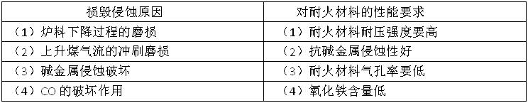 一 高爐爐襯對(duì)耐火材料的使用要求