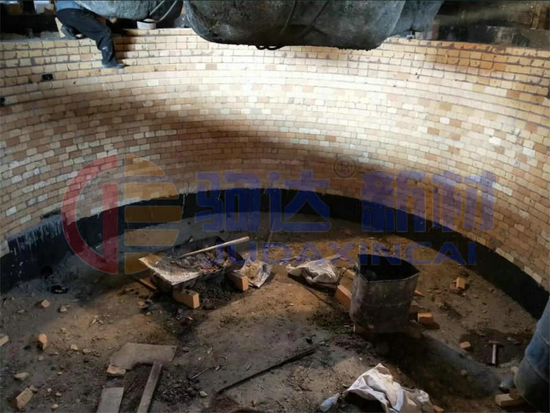 爐底炭質(zhì)層砌筑完成后,準(zhǔn)備開始砌筑爐墻部位高鋁磚。
