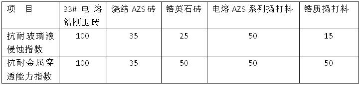 4. 具有良好的抗耐玻璃液侵蝕和抗耐金屬穿透能力(見下表)
