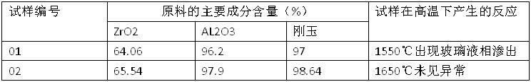 參照大型浮法玻璃熔窯全保溫后使用耐火材料的性能要求和使用條件,對已有燒結(jié)AZS磚在熔窯的使用情況與損毀原因所作的分析。綜合考慮認(rèn)為、:可長期用在保溫熔窯尺度溫度使用的高級燒結(jié)AZS磚,應(yīng)形成斜鋯石、莫來石和剛玉共生的晶相結(jié)構(gòu),并嚴(yán)格限制比例相量,按照這樣的認(rèn)識,設(shè)定了形成所需晶相的材料組成成分,進(jìn)行配方設(shè)計(jì)。在實(shí)際生產(chǎn)中還須嚴(yán)格注意對原料的純度要求。雜質(zhì)的存在,尤其R2O成分的存在,不僅影響ZrSiO4的分解,而且還影響分解后產(chǎn)物的反應(yīng)與新形成的物相結(jié)構(gòu),易形成玻璃相。所以雜質(zhì)含量稍有增加即對產(chǎn)品性能產(chǎn)生顯著影響(如表1)