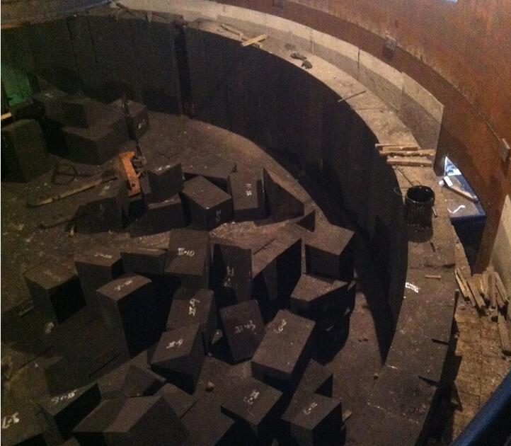 工業(yè)硅礦熱爐的爐體設(shè)計(jì)與電石、硅鐵、硅錳等鐵合金礦熱爐的爐型是有很大的不一樣的,工業(yè)硅礦熱爐為旋轉(zhuǎn)爐體,單臺5個(gè)爐眼,所以在爐襯耐火材料的砌筑上也是需要有相當(dāng)成功經(jīng)驗(yàn)的施工隊(duì)伍才能完成內(nèi)襯的砌筑工作。