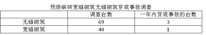 但從實(shí)際使用效果看,預(yù)焙炭磚的無縫砌筑工藝并沒有減少穿底事故的發(fā)生,反而在一定成都上有所增加。