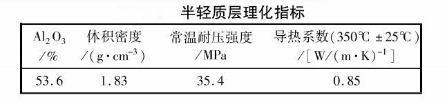 (2)重質(zhì)與半輕質(zhì)體積密度差異不能太大。體積密度差異大會在結合處因燒成收縮不一致產(chǎn)生裂紋,經(jīng)多次試驗,與莫來石耐堿磚復合的半輕質(zhì)材料體積密度在1.8g /cm-3左右最合適。