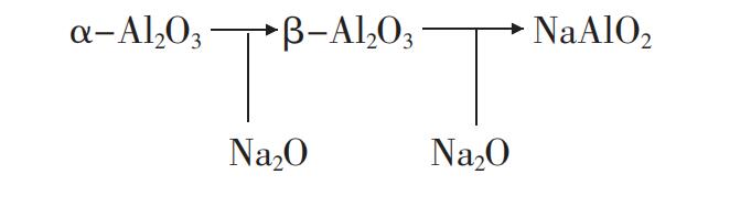 (1)剛玉磚(α-Al2O3)、氧化鋁質(zhì)低水泥澆注料是以剛玉(α-Al2O3)為主體,并有少量的CaO-Al2O3 組成,這些礦物如果堿 Na2O侵入,就會(huì)產(chǎn)生下式所示的反應(yīng):