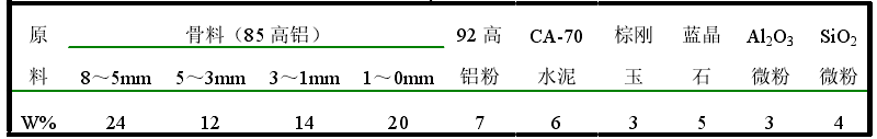 擬在澆注料中加入幾種添加劑,以改善材料的性能。介紹如下:碳化硅具有常溫和高溫強(qiáng)度高、熱導(dǎo)率大、熱膨脹系數(shù)小、抗熱震性好、高溫耐磨性優(yōu)良、抗化學(xué)侵蝕性強(qiáng)等一系列優(yōu)異性能,并且對(duì)熱應(yīng)力具有高阻抗性。加有碳化硅的礬土基耐火材料經(jīng)燒結(jié)后,進(jìn)入到澆注料試樣的剛玉—莫來(lái)石結(jié)構(gòu)中,不僅使高溫強(qiáng)度增加,而且抗熱震性由于更柔軟的結(jié)構(gòu)而得到改善。