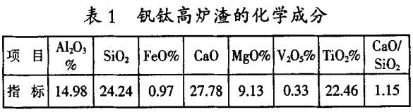 1.1釩鈦高爐渣的化學成分:取高爐下渣,測量化學成分見表1: