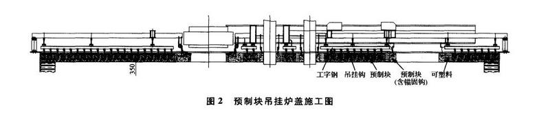 目前國內(nèi)在用的礦熱爐爐蓋內(nèi)襯結構大約有2種 :①爐蓋內(nèi)襯采用一種澆注料澆注模式 ;②爐蓋內(nèi)襯采用預制塊吊掛砌筑模式。