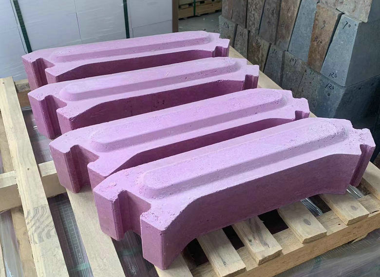 鉻剛玉磚因具有很高的耐壓強度、抗折強度、抗酸堿侵蝕性以及金屬氧化物的化學侵蝕性能,被廣泛應用于建材工業(yè)玻璃窯蓄熱室及墻體、鉛鋅有色冶煉爐,但它也有個不利的弱點是抗熱震性能較差,對于開停比較頻繁的間歇是冶煉爐不太適用。要解決這個問題,就必須在工藝配方中加入一定量的莫來石來改善抗熱震性能。莫來石因具有良好的高溫力學、高溫熱學性能、熱膨脹均勻、抗熱震性能好、抗化學侵蝕性優(yōu)良等特點,被廣泛應用于剛玉磚及鋯剛玉復合磚中以提高制品的抗熱震性能。