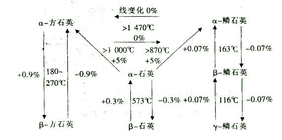 窯體的每層襯都是由一層致密層和一層或多層隔熱耐火材料層組成。隨著窯操作者降低操作 能源成本力度需求的增加更需要使用體積密度更低、高溫隔熱性能更好的隔熱材料。隔熱硅磚都會經(jīng)歷在燒成期間石英轉(zhuǎn)變?yōu)榉绞⒑枉[石英的每個階段以下是轉(zhuǎn)變過程。