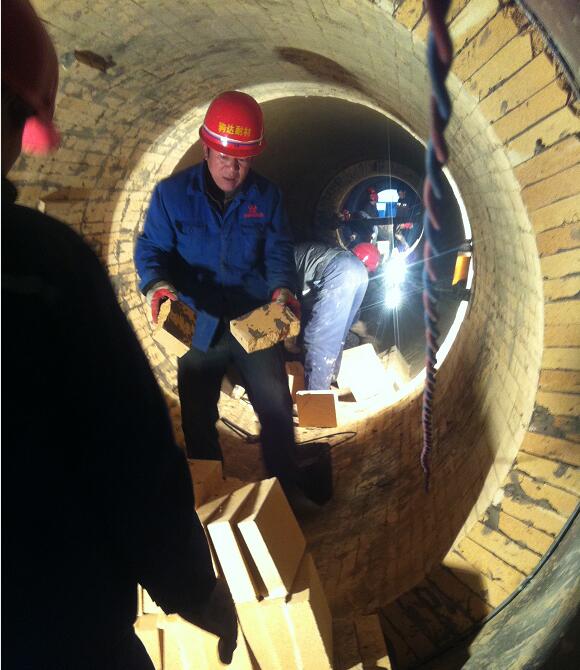 一般拱頂和圓筒襯里宜采用環(huán)峰砌筑,直墻和斜面宜采用錯縫砌筑,砌筑時應(yīng)力求磚縫平直,弧面圓滑,砌體密實。對于窯筒耐火襯里還必須確保磚環(huán)與窯筒可靠地同心,故應(yīng)保證磚面與窯筒體完全貼緊,磚間應(yīng)是面接觸且結(jié)合牢固。砌筑不動設(shè)備的磚磚襯時,火泥將飽滿度要求達到95%以上,表面磚縫要用原漿勾縫,但要及時刮除磚襯表面多余的泥漿。