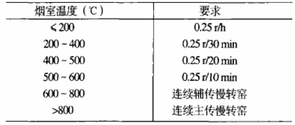 (3)若遇下雨天氣,窯尾溫度低于500℃,盤窯時間減半;窯尾溫度高于500℃連續(xù)輔傳慢轉(zhuǎn)窯。